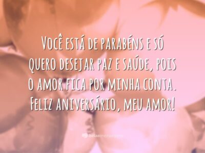 Você está de parabéns e só quero desejar paz e saúde, pois o amor fica por minha conta. Feliz aniversário, meu amor!