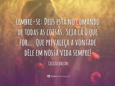 Lembre-se: Deus está no comando de todas as coisas. Seja lá o que for… Que prevaleça a vontade dEle em nossa vida sempre!