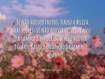 Se não houver frutos, valeu a beleza das flores; se não houver flores, valeu a sombra das folhas; se não houver folhas, valeu a intenção da semente.