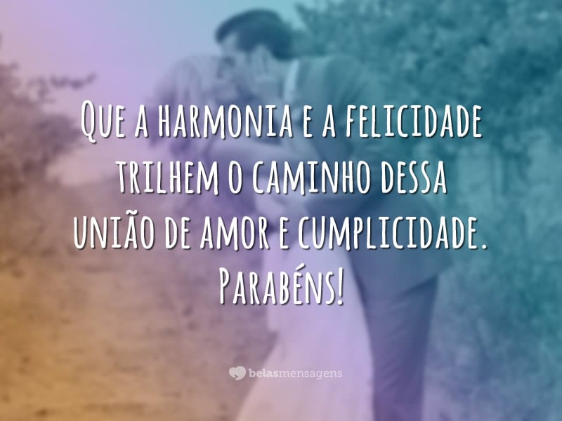 Desejo um feliz casamento e que os sonhos que ambos compartilhar se tornem realidade, unidos para a nova vida, seja ela só de amor, paz e alegria para que possam desfrutar da felicidade tão sonhada.