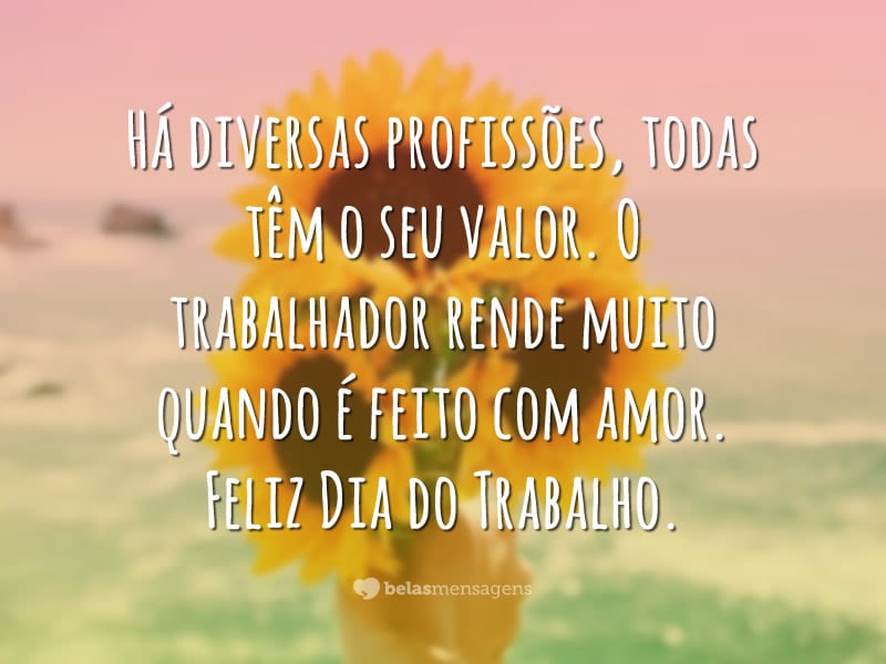 Há diversas profissões, todas têm o seu valor. O trabalhador rende muito quando é feito com amor. Feliz Dia do Trabalho.