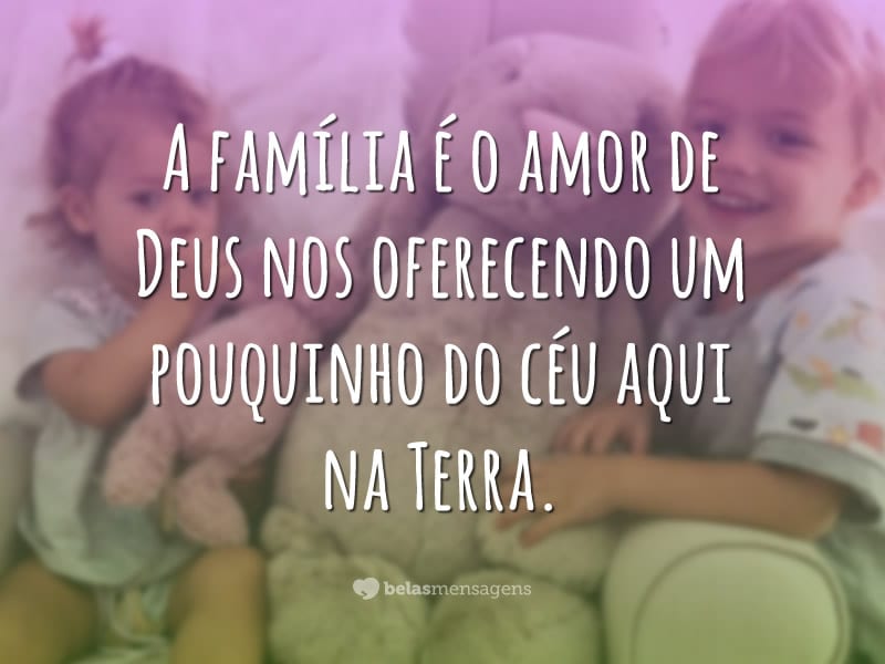 A família é o amor de Deus nos oferecendo um pouquinho do céu aqui na Terra.