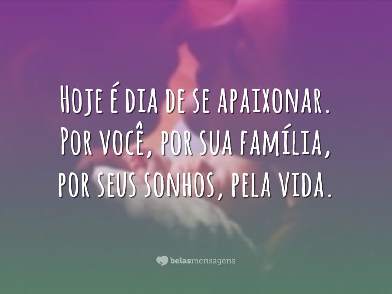 Hoje é dia de se apaixonar. Por você, por sua família, por seus sonhos, pela vida.