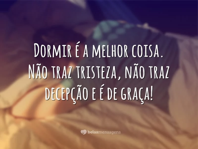 Dormir é a melhor coisa. Não traz tristeza, não traz decepção e é de graça!