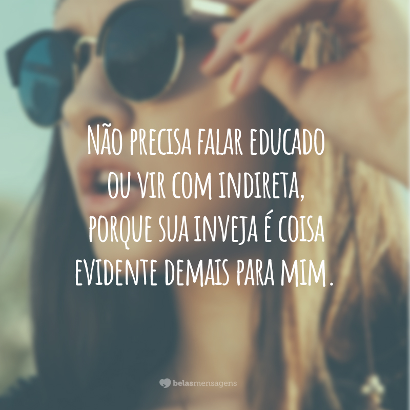 Não precisa falar educado ou vir com indireta, porque sua inveja é coisa evidente demais para mim.
