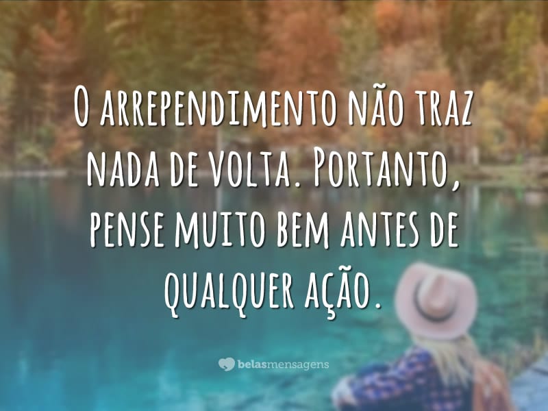 O arrependimento não traz nada de volta. Portanto, pense muito bem antes de qualquer ação.