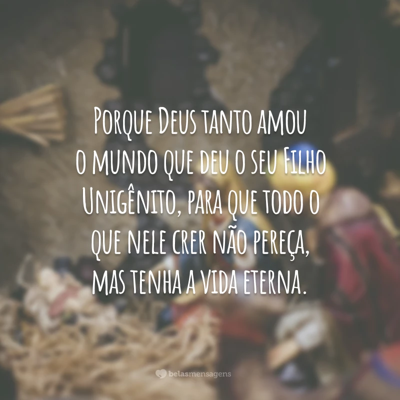 Porque Deus tanto amou o mundo que deu o seu Filho Unigênito, para que todo o que nele crer não pereça, mas tenha a vida eterna.