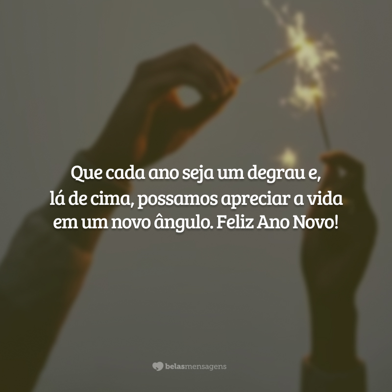 Que cada ano seja um degrau e, lá de cima, possamos apreciar a vida em um novo ângulo. Feliz Ano Novo!