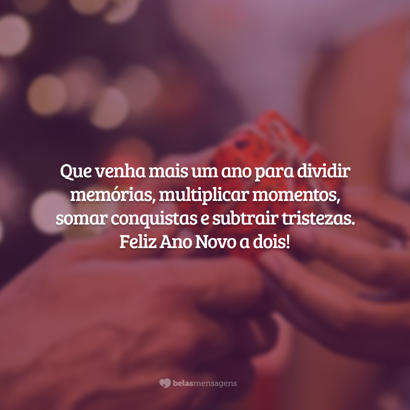 Que venha mais um ano para dividir memórias, multiplicar momentos, somar conquistas e subtrair tristezas. Feliz Ano Novo a dois!