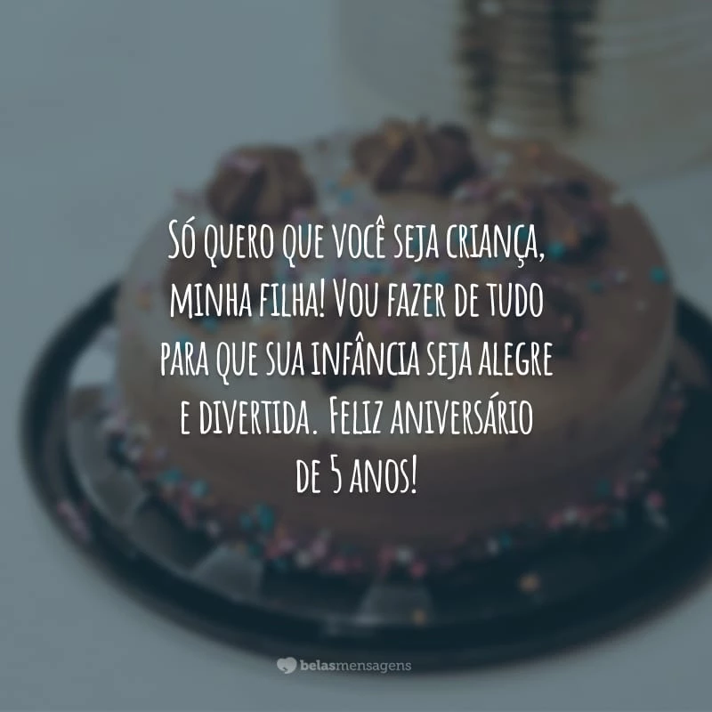 Só quero que você seja criança, minha filha! Vou fazer de tudo para que sua infância seja alegre e divertida. Feliz aniversário de 5 anos!