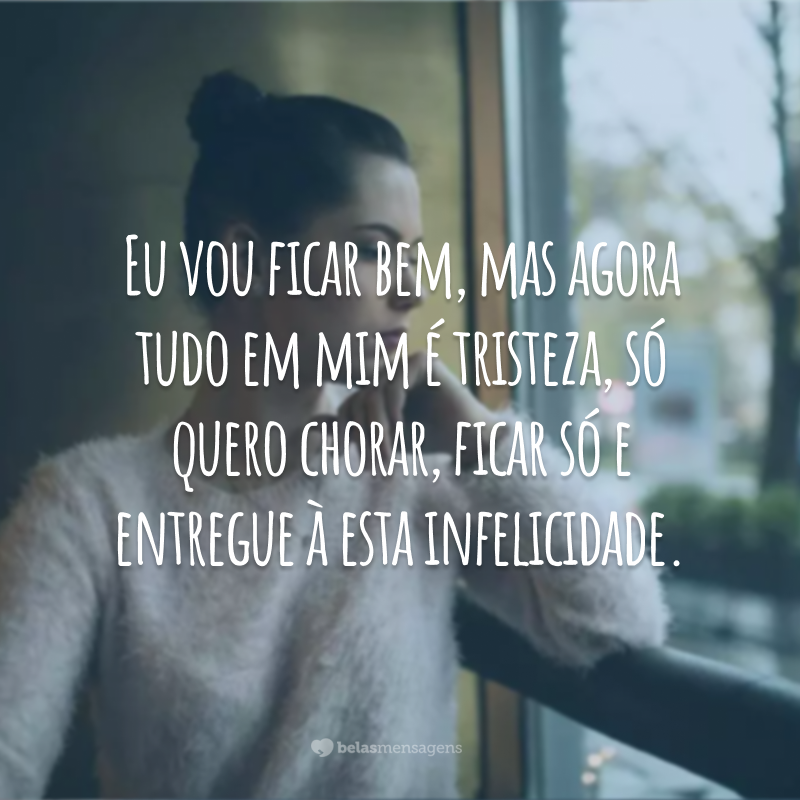 Eu vou ficar bem, mas agora tudo em mim é tristeza, só quero chorar, ficar só e entregue à esta infelicidade.