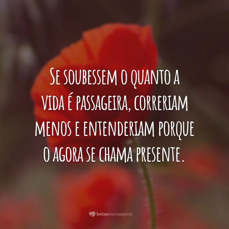 Se soubessem o quanto a vida é passageira, correriam menos e entenderiam porque o agora se chama presente.