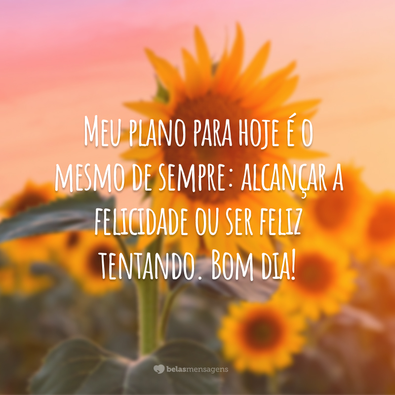 Meu plano para hoje é o mesmo de sempre: alcançar a felicidade ou ser feliz tentando. Bom dia!
