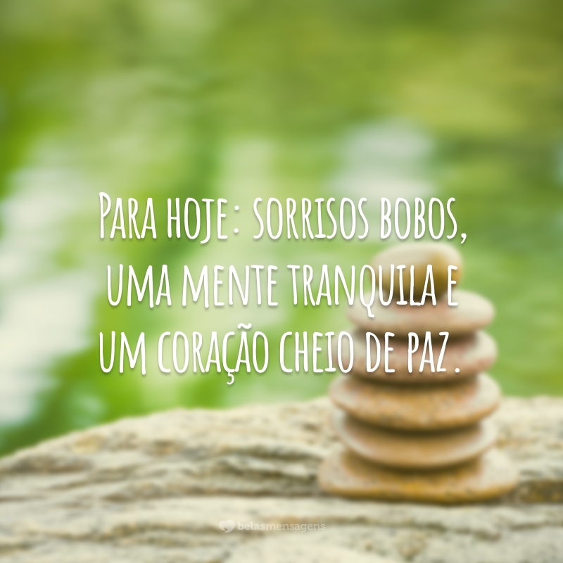 Para hoje: sorrisos bobos, uma mente tranquila e um coração cheio de paz.