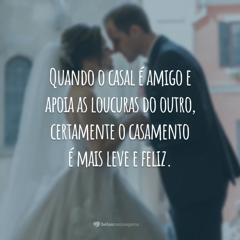 Quando o casal é amigo e apoia as loucuras do outro, certamente o casamento é mais leve e feliz.