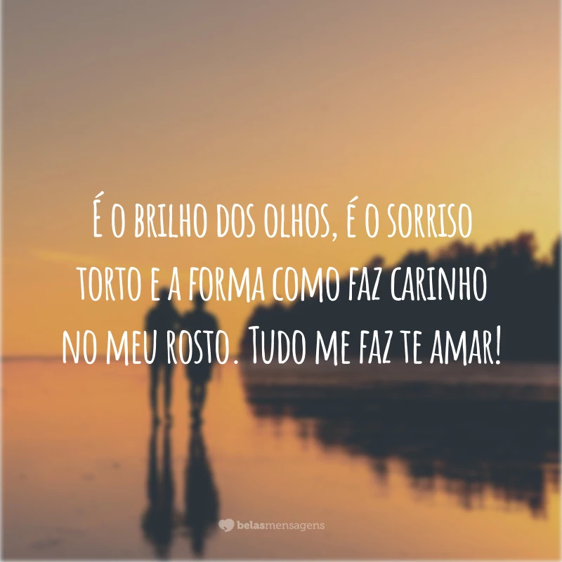 É o brilho dos olhos, é o sorriso torto e a forma como faz carinho no meu rosto. Tudo me faz te amar!