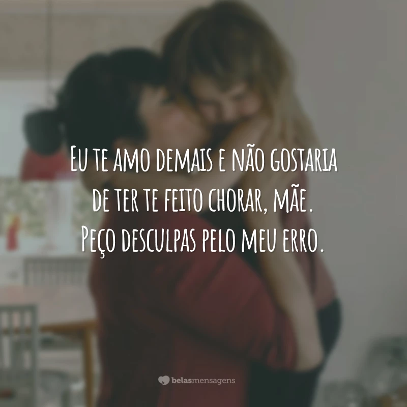 Eu te amo demais e não gostaria de ter te feito chorar, mãe. Peço desculpas pelo meu erro.