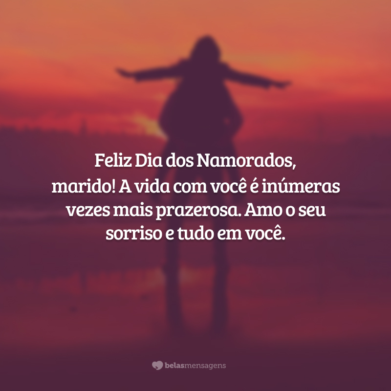 Feliz Dia dos Namorados, marido! A vida com você é inúmeras vezes mais prazerosa. Amo o seu sorriso e tudo em você.