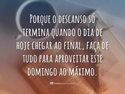 Espero que o seu domingo seja carregado de sentimentos bons! Que você possa aproveitar cada segundo desse dia de descanso.