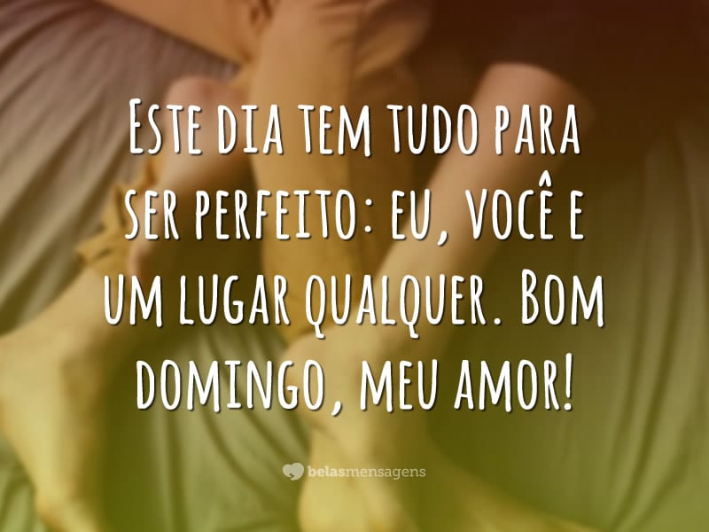 Este dia tem tudo para ser perfeito: eu, você e um lugar qualquer. Bom domingo, meu amor!