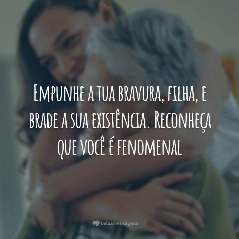 Empunhe a tua bravura, filha, e brade a sua existência. Reconheça que você é fenomenal.