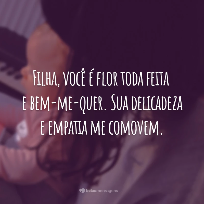 Filha, você é flor toda feita de bem-me-quer. Sua delicadeza e empatia me comovem.