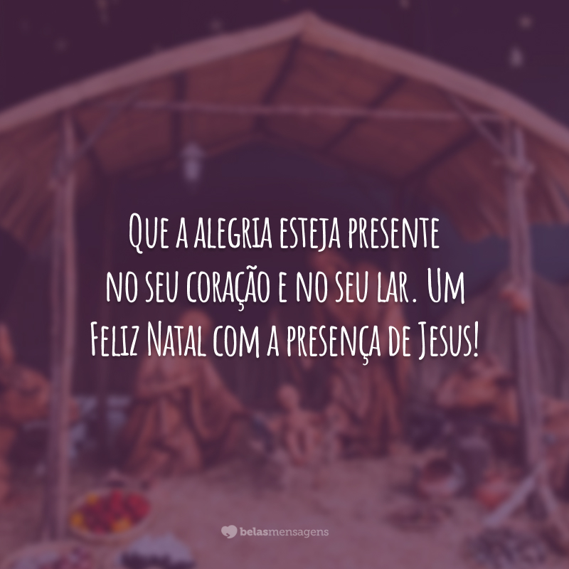 Que a alegria esteja presente no seu coração e no seu lar. Um Feliz Natal com a presença de Jesus!