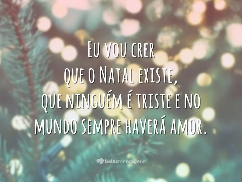 Eu vou crer que o Natal existe, que ninguém é triste e no mundo sempre haverá amor.