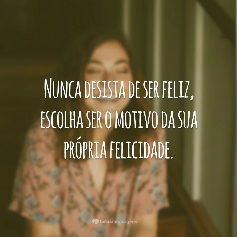 Nunca desista de ser feliz, escolha ser o motivo da sua própria felicidade.