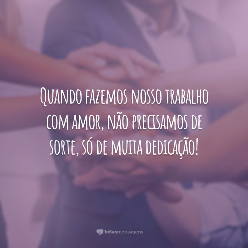 Quando fazemos nosso trabalho com amor, não precisamos de sorte, só de muita dedicação!