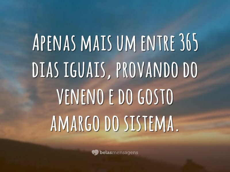 Apenas mais um entre 365 dias iguais, provando do veneno e do gosto amargo do sistema.