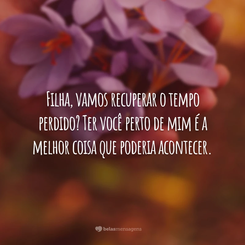 Filha, vamos recuperar o tempo perdido? Ter você perto de mim é a melhor coisa que poderia acontecer.