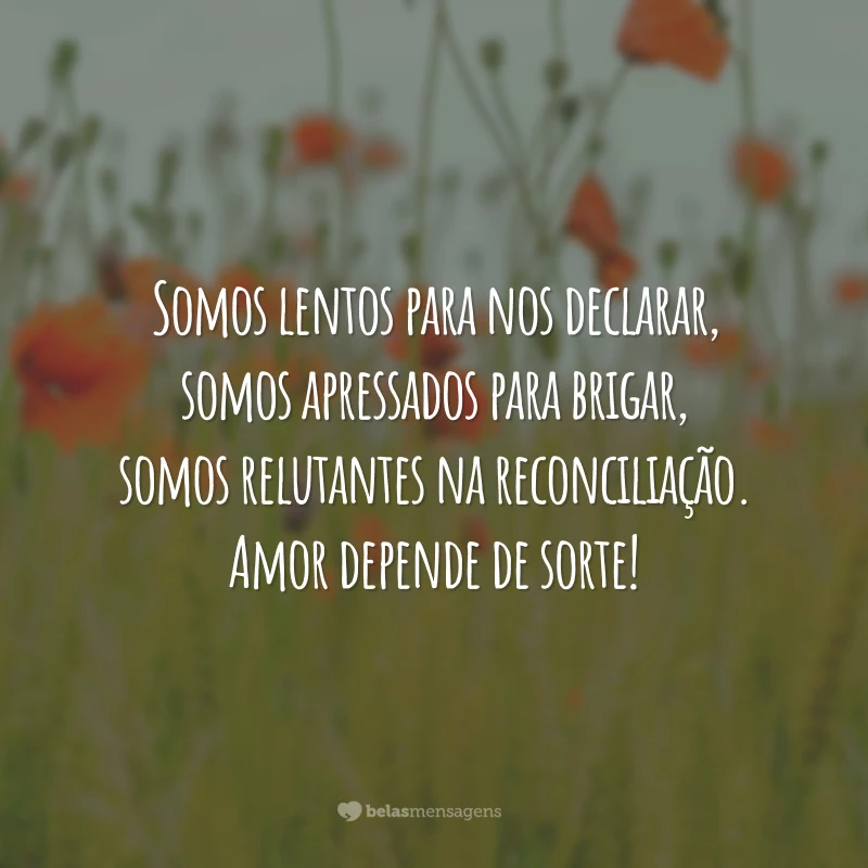Somos lentos para nos declarar, somos apressados para brigar, somos relutantes na reconciliação. Amor depende de sorte!