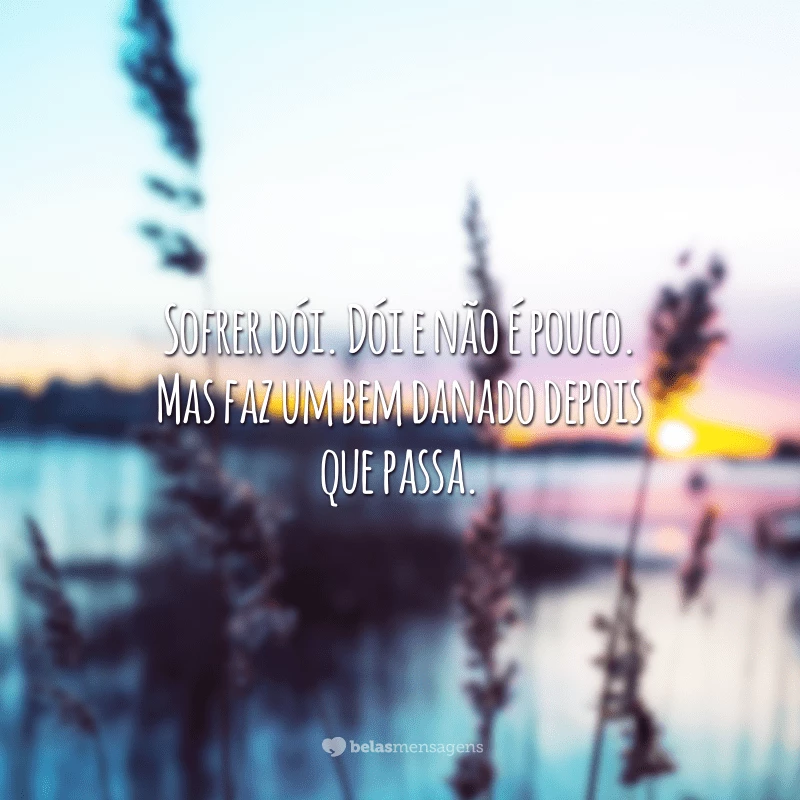 Sofrer dói. Dói e não é pouco. Mas faz um bem danado depois que passa.