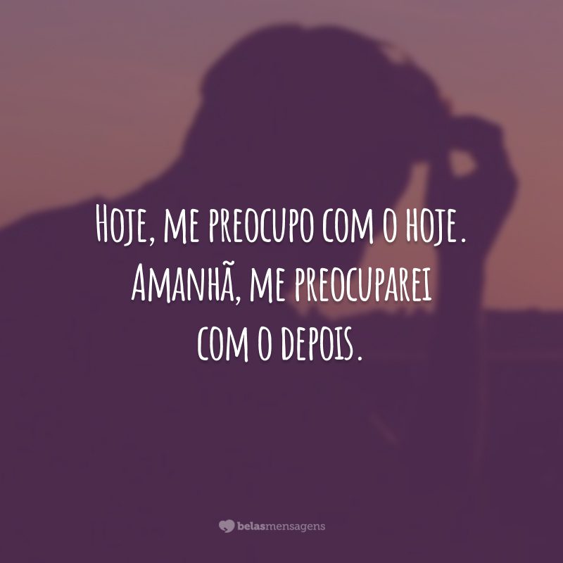 Hoje, me preocupo com o hoje. Amanhã, me preocuparei com o depois.