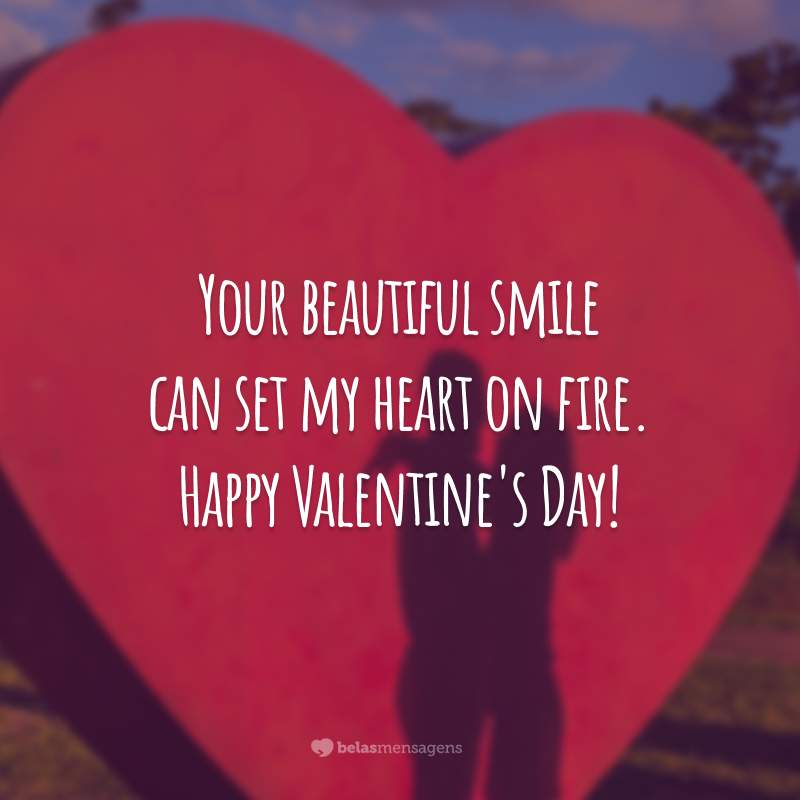 Your beautiful smile can set my heart on fire. Happy Valentine's Day! (Seu lindo sorriso é capaz de incendiar meu coração.)