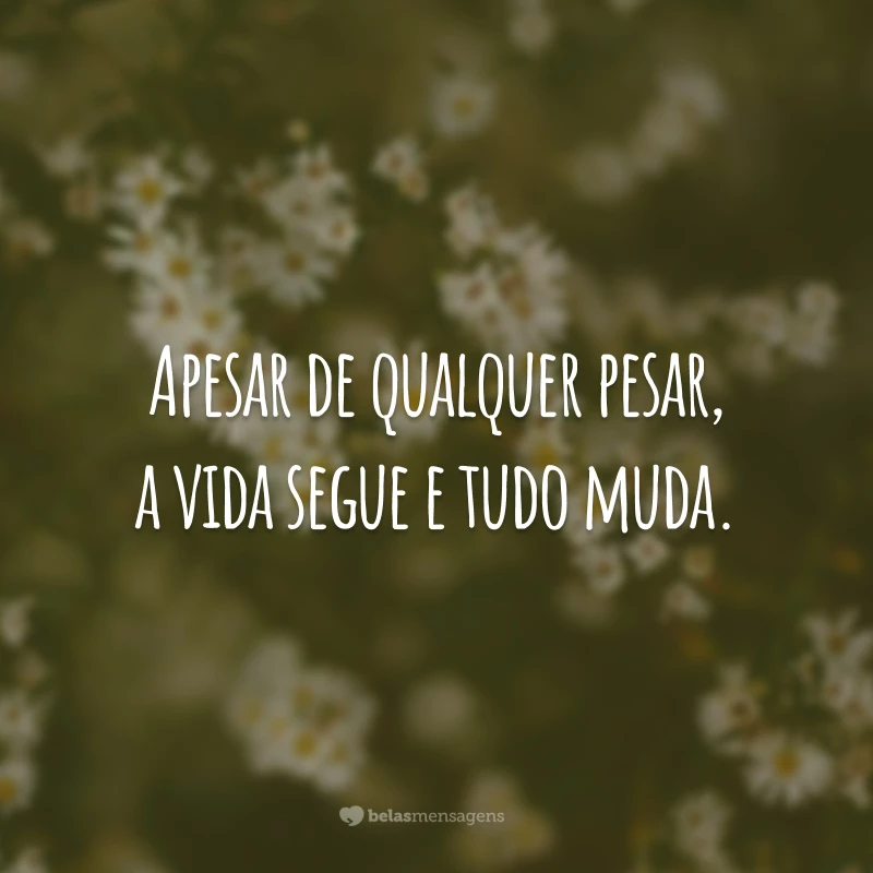 Apesar de qualquer pesar, a vida segue e tudo muda.