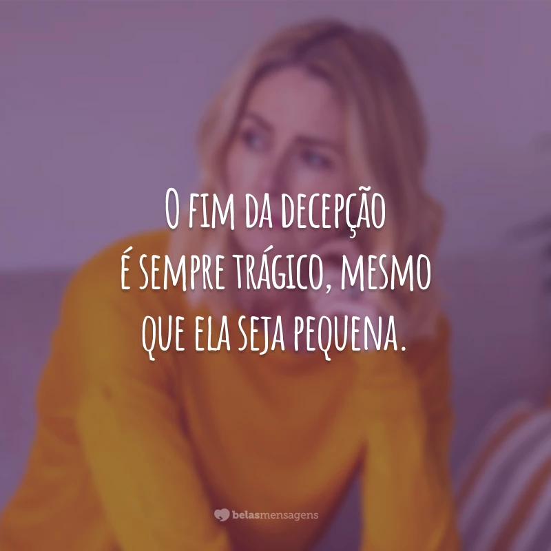 O fim da decepção é sempre trágico, mesmo que ela seja pequena.