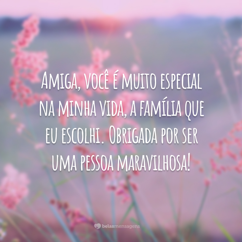 Amiga, você é muito especial na minha vida, a família que eu escolhi. Obrigada por ser uma pessoa maravilhosa!
