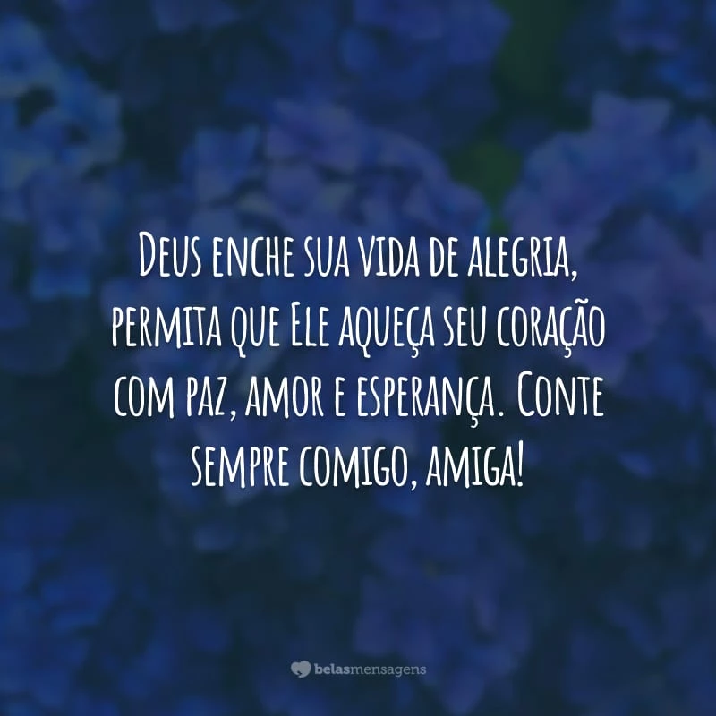 Deus enche sua vida de alegria, permita que Ele aqueça seu coração com paz, amor e esperança. Conte sempre comigo, amiga!