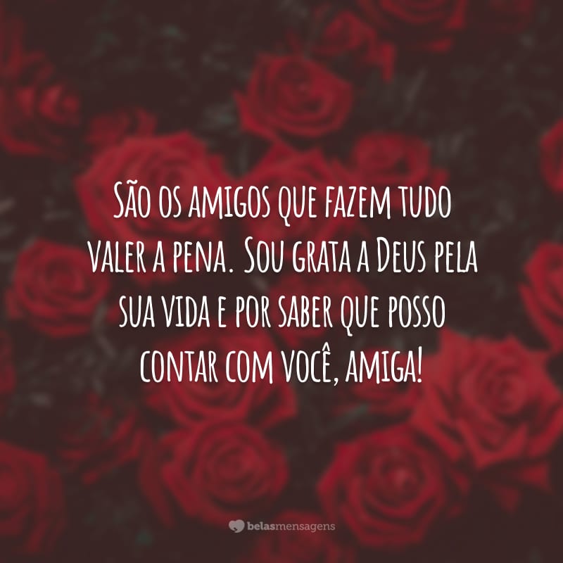 São os amigos que fazem tudo valer a pena. Sou grata a Deus pela sua vida e por saber que posso contar com você, amiga!