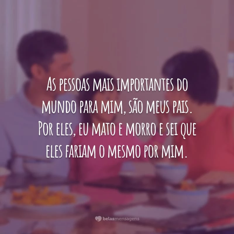 As pessoas mais importantes do mundo para mim, são meus pais. Por eles, eu mato e morro e sei que eles fariam o mesmo por mim.