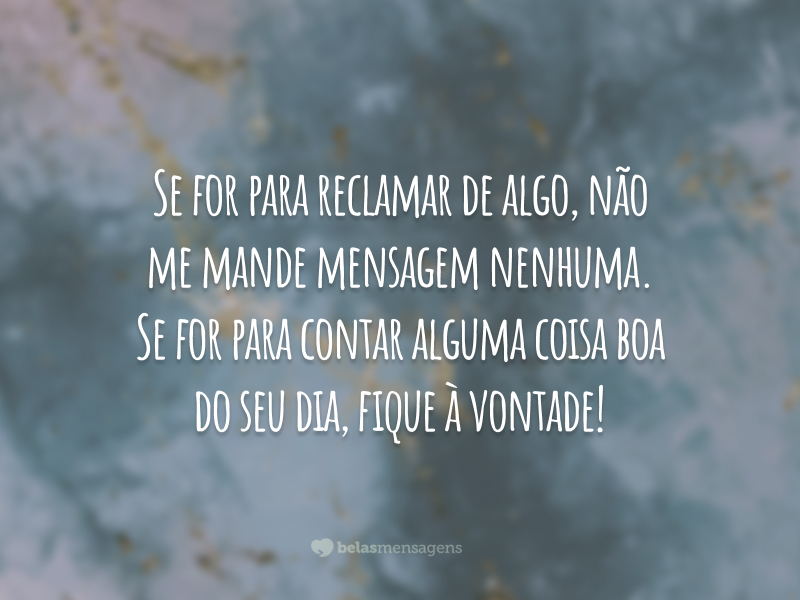 Se for para reclamar de algo, não me mande mensagem nenhuma. Se for para contar alguma coisa boa do seu dia, fique à vontade!