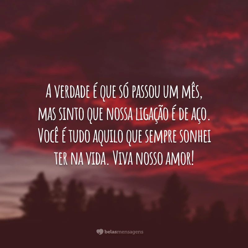A verdade é que só passou um mês, mas sinto que nossa ligação é de aço. Você é tudo aquilo que sempre sonhei ter na vida. Viva nosso amor!