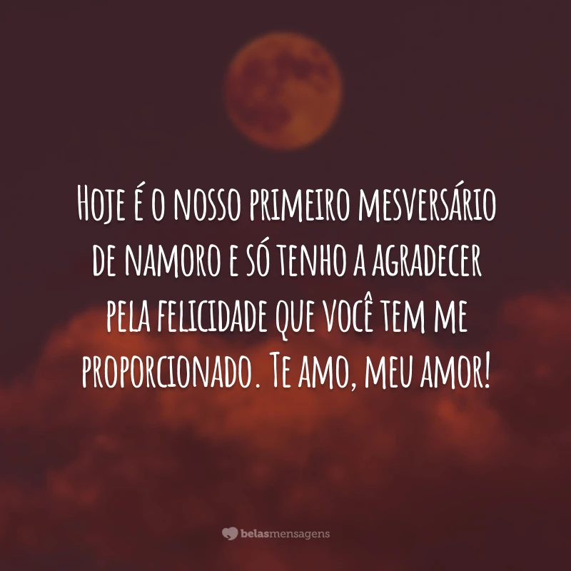 Hoje é o nosso primeiro mesversário de namoro e só tenho a agradecer pela felicidade que você tem me proporcionado. Te amo, meu amor!