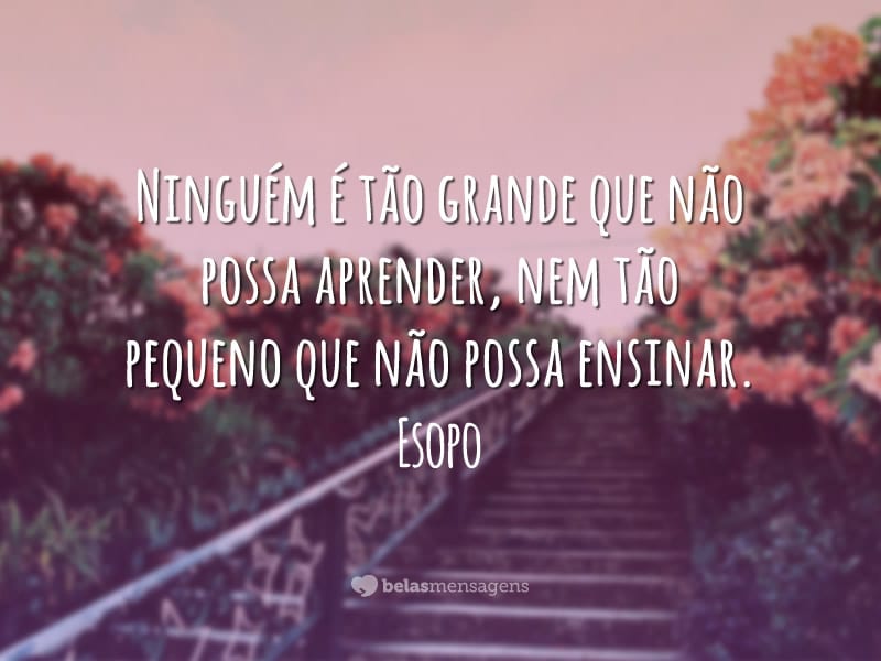 Ninguém é tão grande que não possa aprender, nem tão pequeno que não possa ensinar.