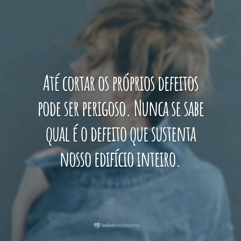 Até cortar os próprios defeitos pode ser perigoso. Nunca se sabe qual é o defeito que sustenta nosso edifício inteiro.