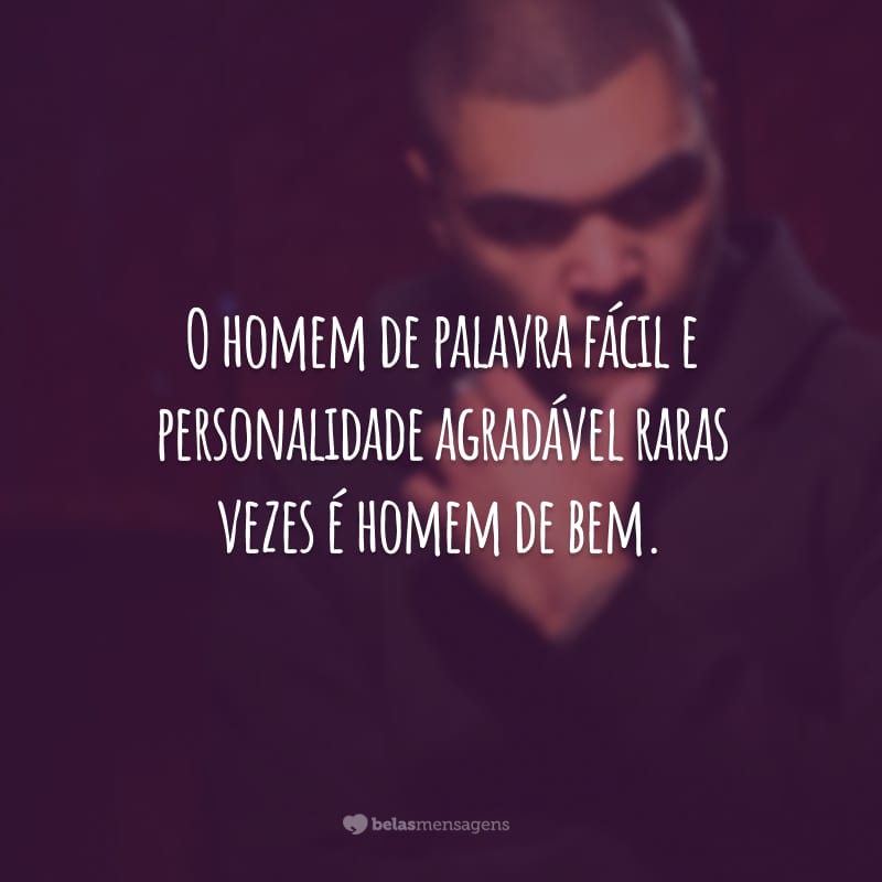 O homem de palavra fácil e personalidade agradável raras vezes é homem de bem.