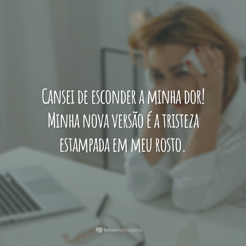 Cansei de esconder a minha dor! Minha nova versão é a tristeza estampada em meu rosto.