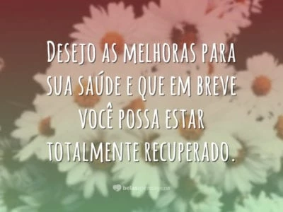 Desejo as melhoras para sua saúde e que em breve você possa estar totalmente recuperado.